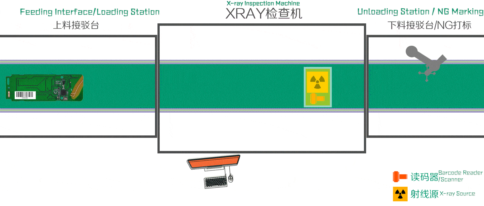 ✔ Enables hiah-throughput automated in-line full X-ray inspection on production lines